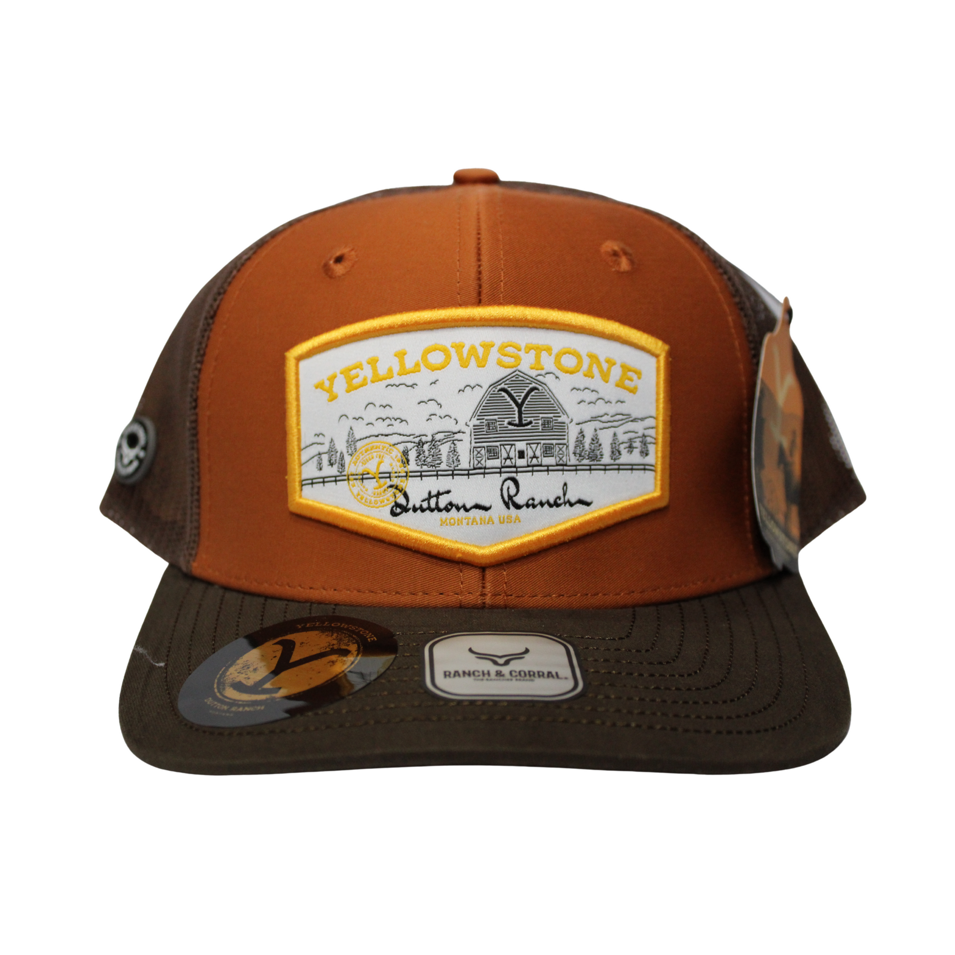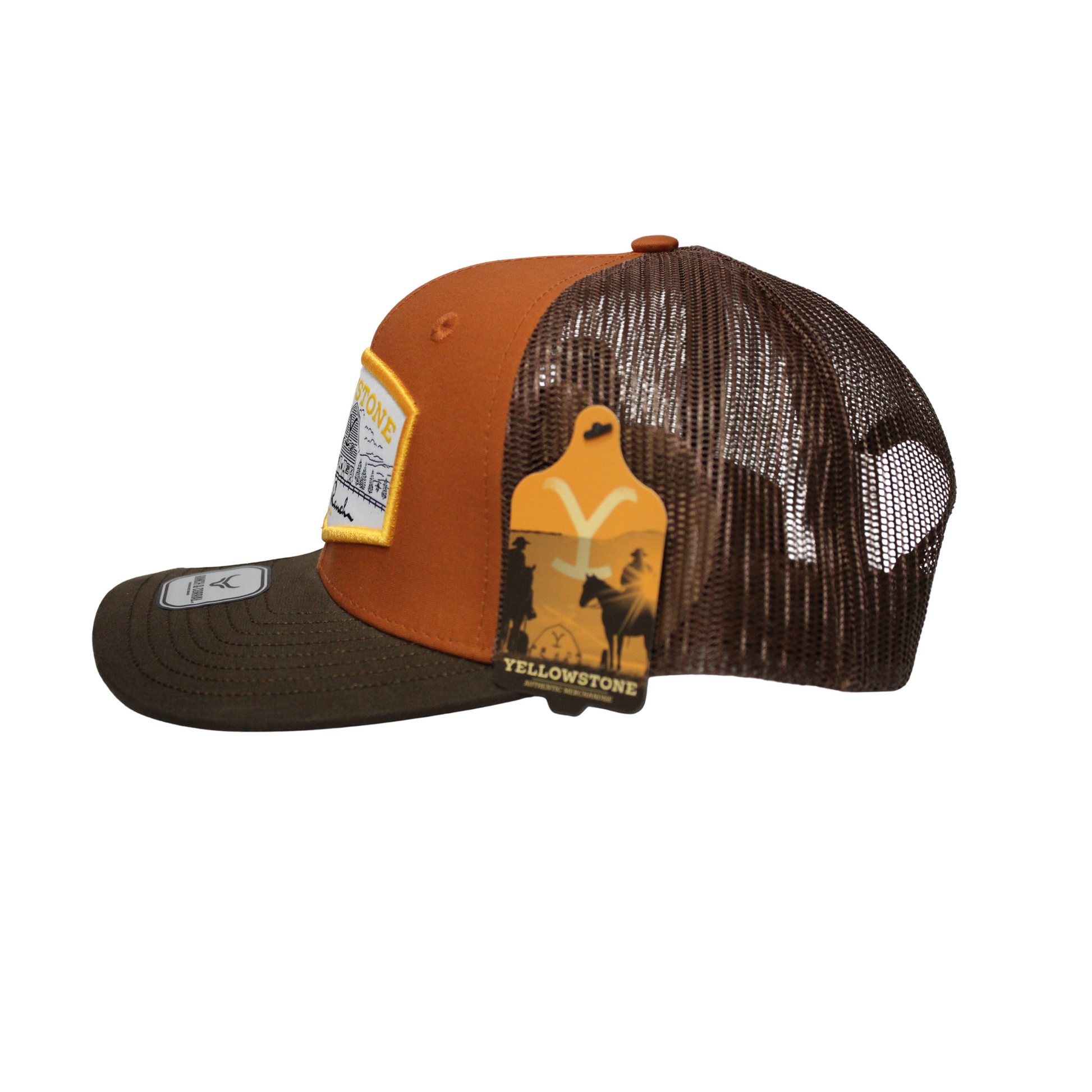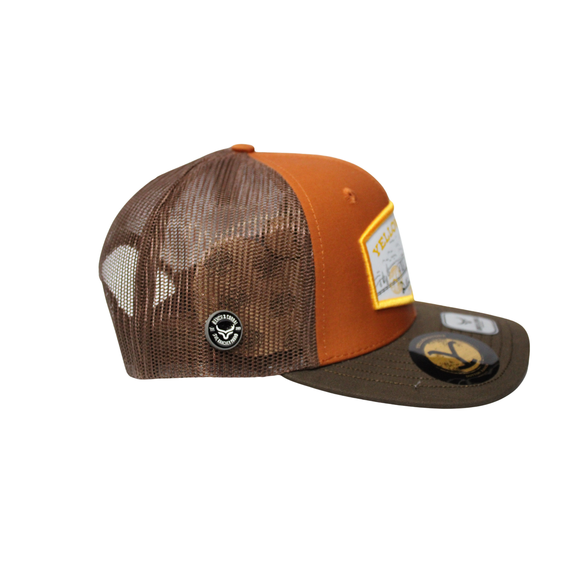 Gorra trucker en tonos café con parche bordado del icónico Dutton Ranch. Un diseño que conecta con el espíritu de Montana y la vida de rancho.